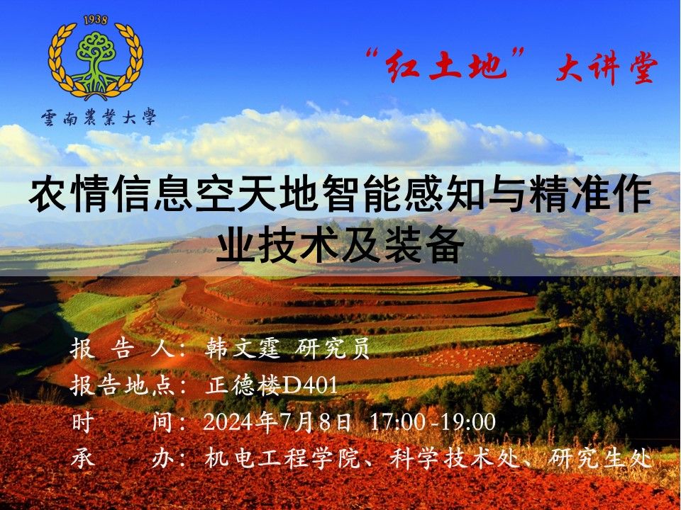 7月8日“紅土地”大講堂:農情信息空天地智能感知與精準作業技術及裝備