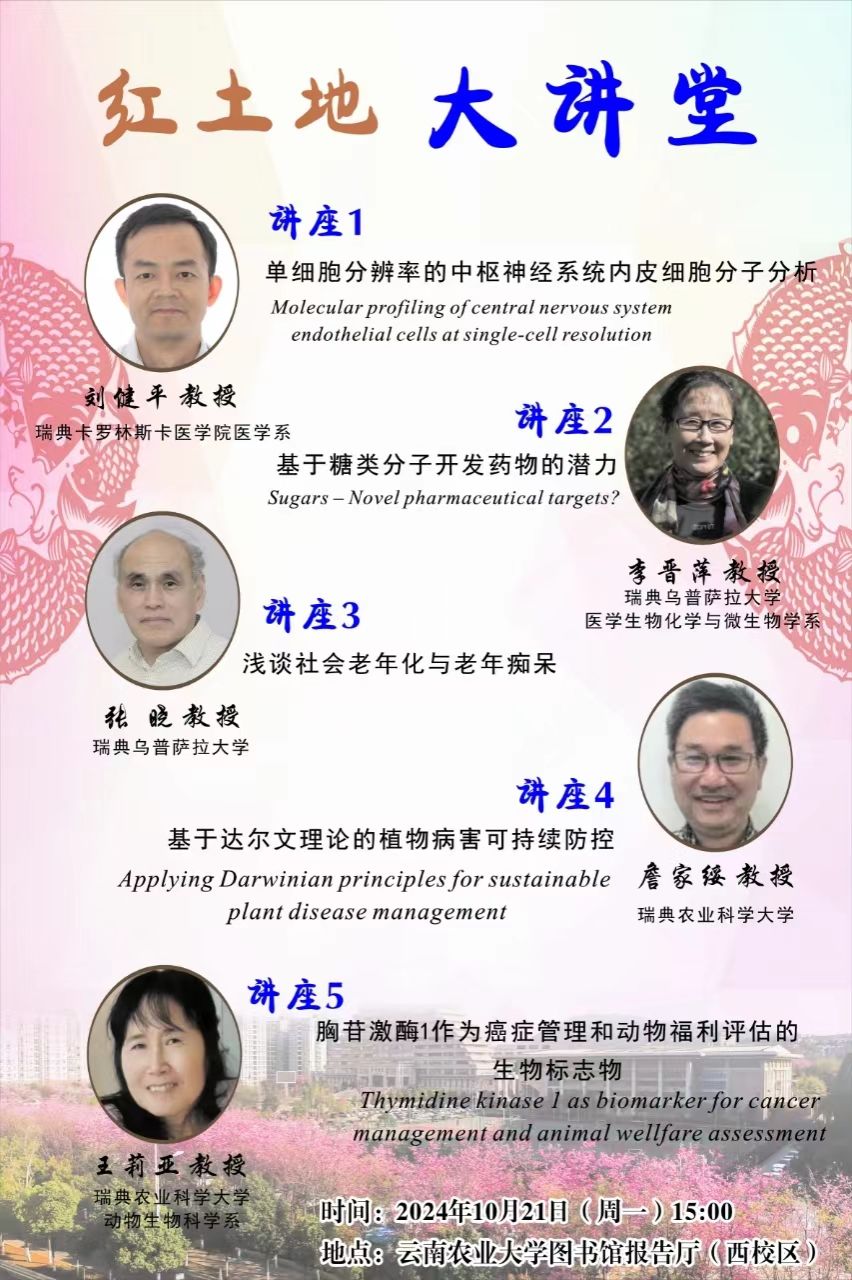 10月21日“紅土地”大講堂:基于糖類(lèi)分子開(kāi)發(fā)藥物的潛力、淺談社會(huì)老齡化和老年癡呆等5個(gè)講座