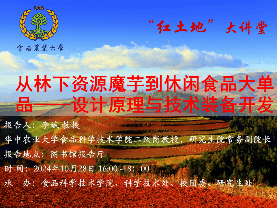 10月28日“紅土地”大講堂:從林下資源魔芋到休閑食品大單品——設計原理與技術裝備開發