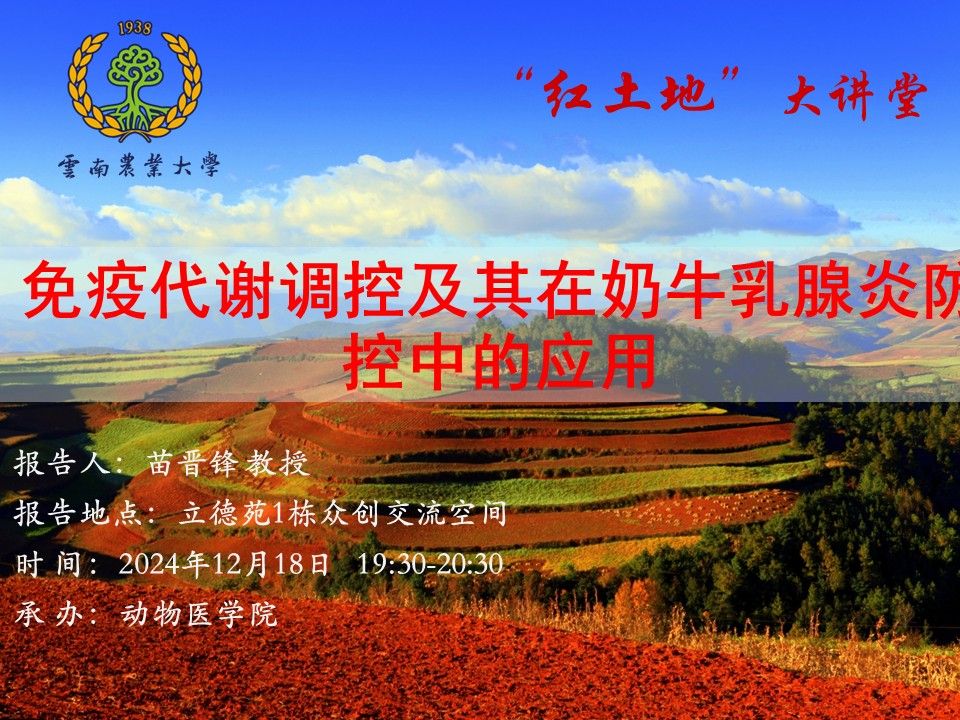 12月18日“紅土地”大講堂:免疫代謝調控及其在奶牛乳腺炎防控中的應用