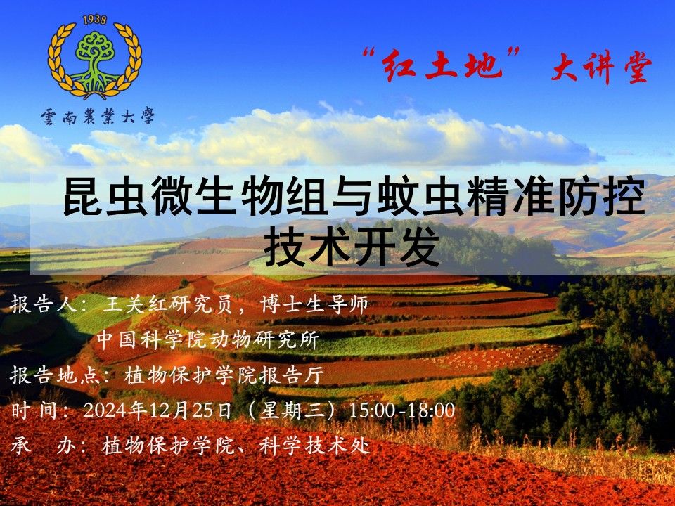 12月25日“紅土地”大講堂:昆蟲微生物組與蚊蟲精準防控技術開發