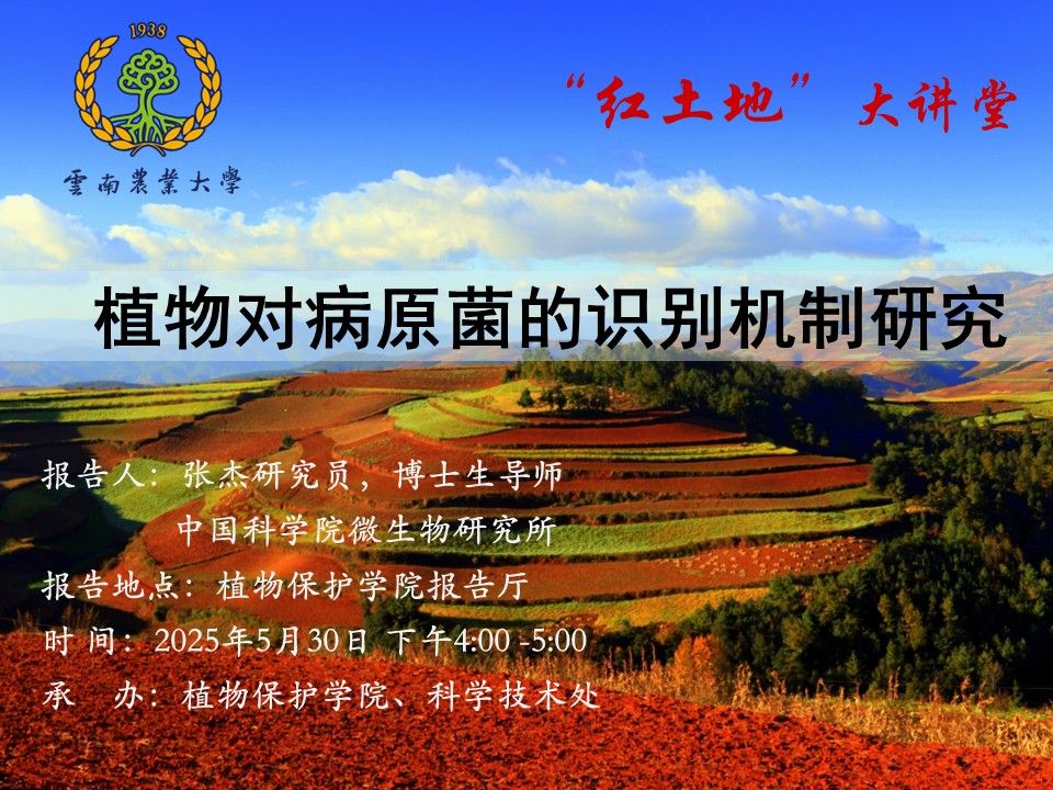 5月30日“紅土地”大講堂:植物對病原菌的識別機(jī)制研究