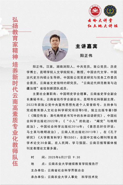 6月27日云嶺大講堂:弘揚教育家精神 培養新時代云南高素質專業化教師隊伍