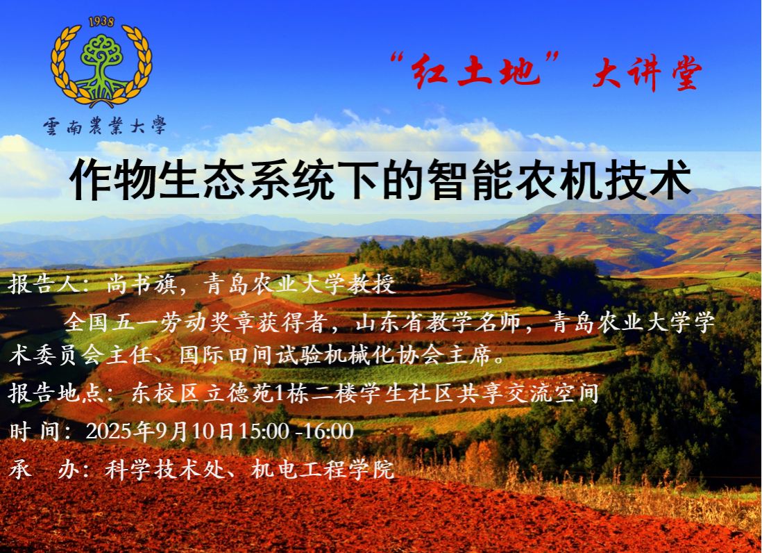 9月10日“紅土地”大講堂:作物生態(tài)系統(tǒng)下的智能農(nóng)機(jī)技術(shù)