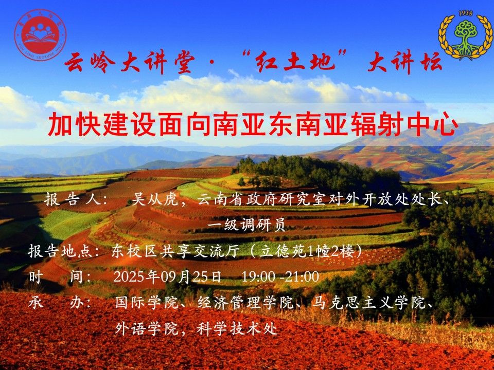 9月25日“紅土地”大講堂:加快建設面向南亞東南亞輻射中心