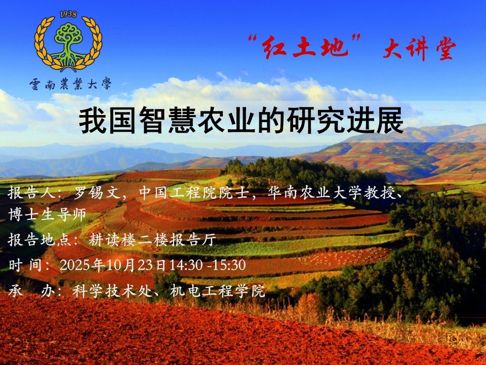 10月23日“紅土地”大講堂:我國智慧農(nóng)業(yè)的研究進(jìn)展