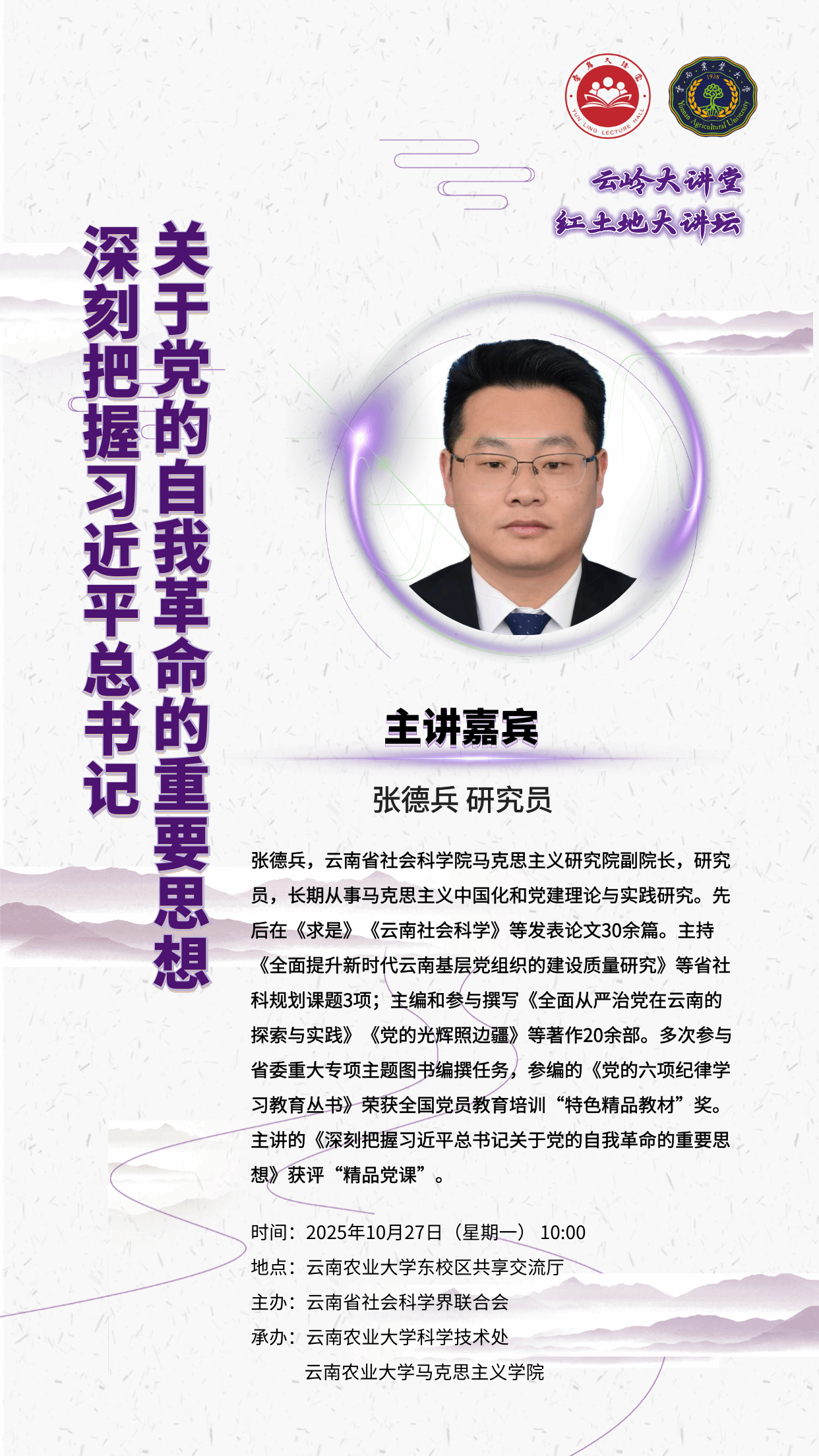 10月27日“云嶺”大講堂 “紅土地”大講壇:深刻把握習近平總書記關于黨的自我革命的重要思想