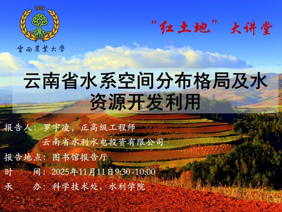 11月11日“紅土地”大講堂:云南省水系空間分布格局及水資源開發利用