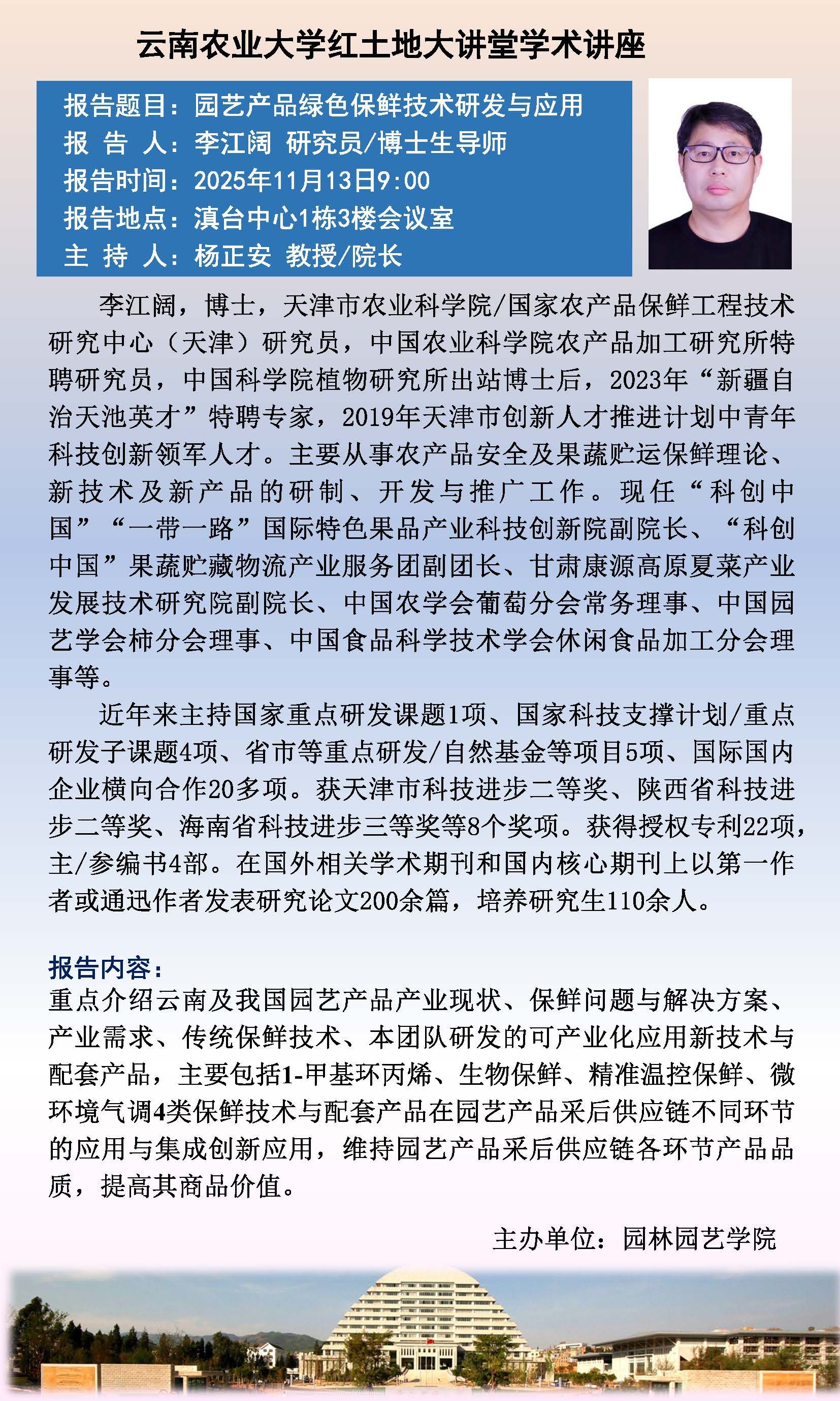 11月13日“紅土地”大講堂:園藝產(chǎn)品綠色保鮮技術研發(fā)與應用