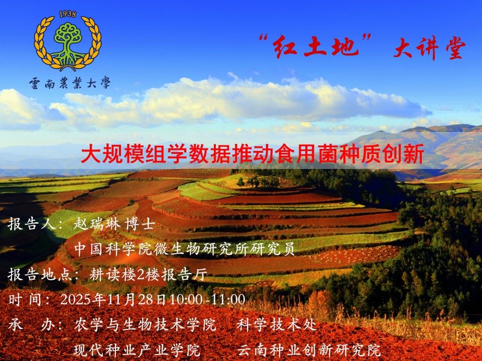 11月28日“紅土地”大講堂:大規(guī)模組學(xué)數(shù)據(jù)推動食用菌種質(zhì)創(chuàng)新
