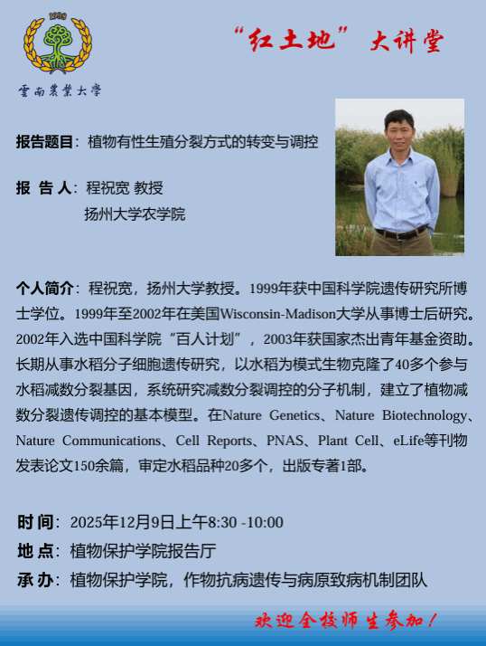 12月9日“紅土地”大講堂:植物有性生殖分裂方式的轉變與調控