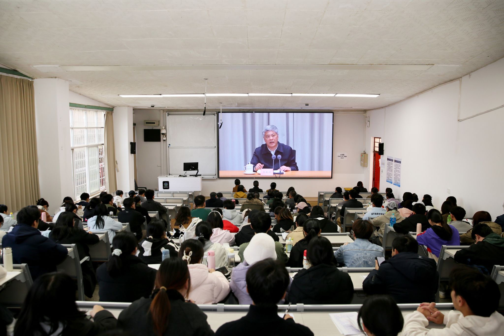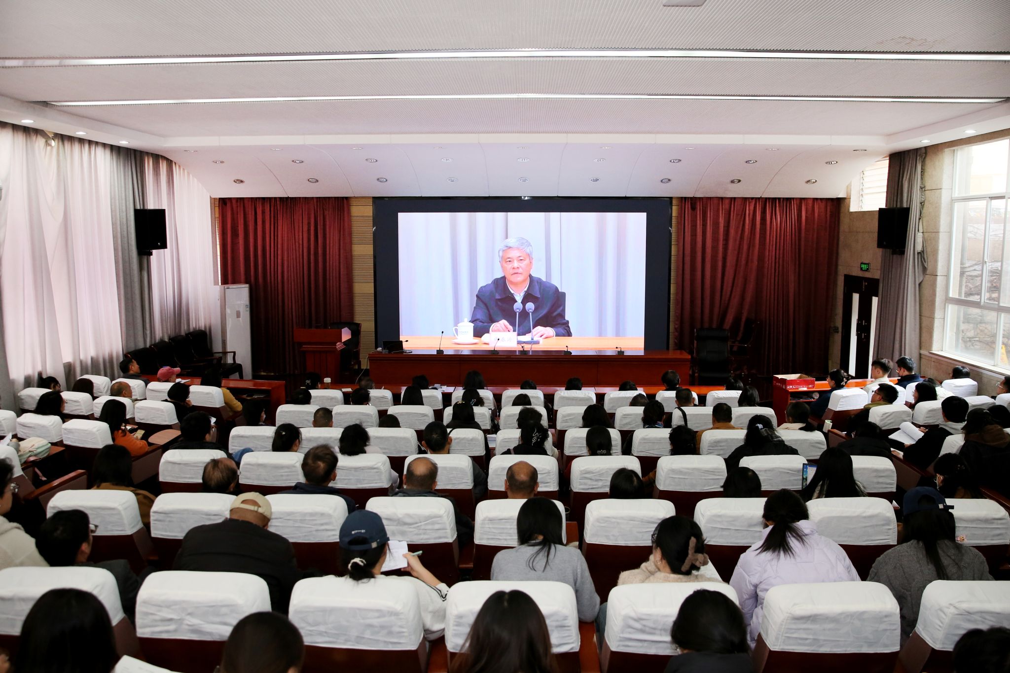 本站消息 11月26日,學(xué)校組織全校師生黨員開展2025年黨員基本培訓(xùn)第三次集中大課,共同聆聽由中央黨校(國家行政學(xué)院)副校(院)長謝春濤主講的《中國共產(chǎn)黨與中華民族偉大復(fù)興》專題輔導(dǎo)。會議由學(xué)校黨委書記王衛(wèi)斌主持,學(xué)校黨委委員、黨員校領(lǐng)導(dǎo)及3754名師生黨員,在1個主課堂和21個分課堂參加學(xué)習(xí)培訓(xùn)。