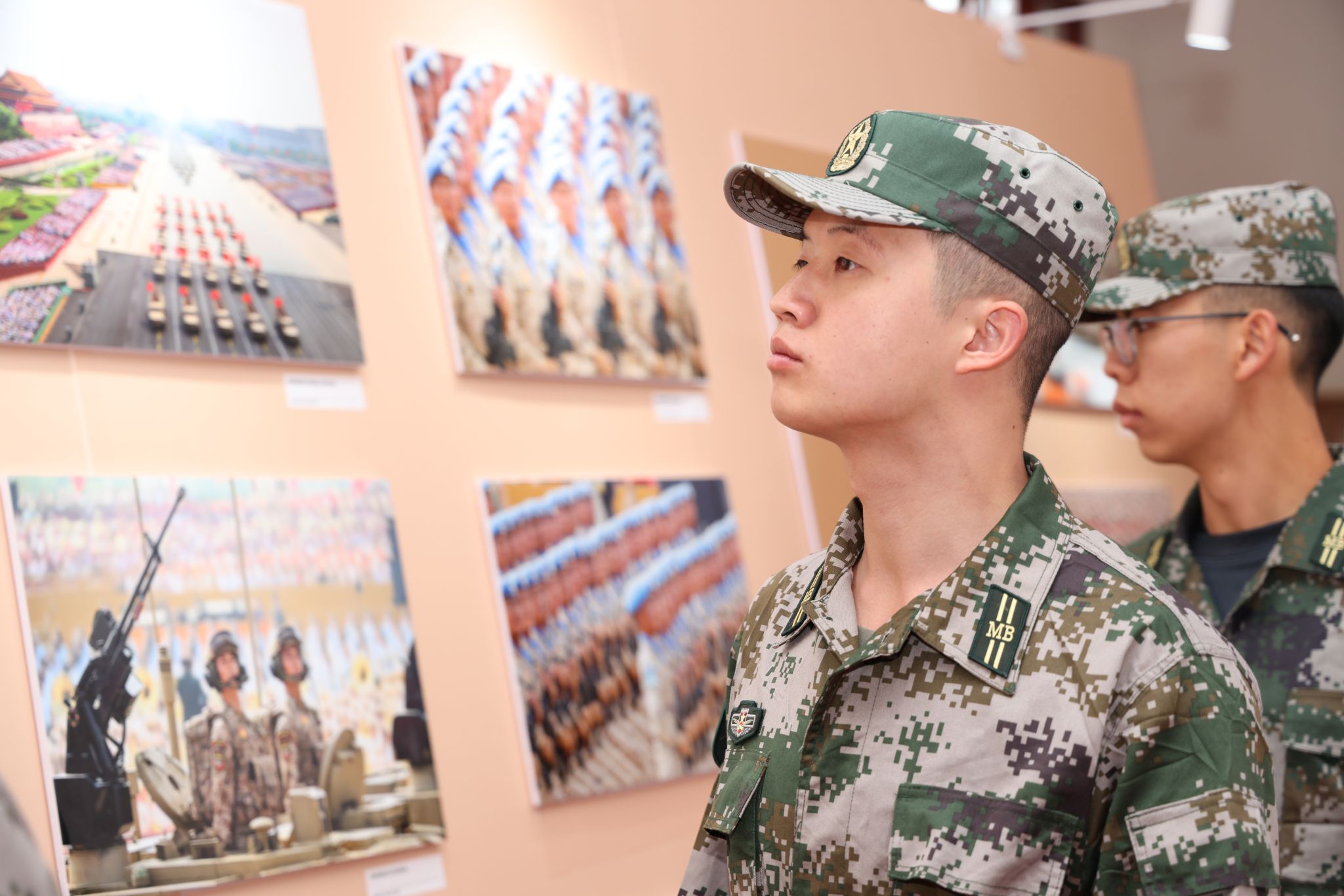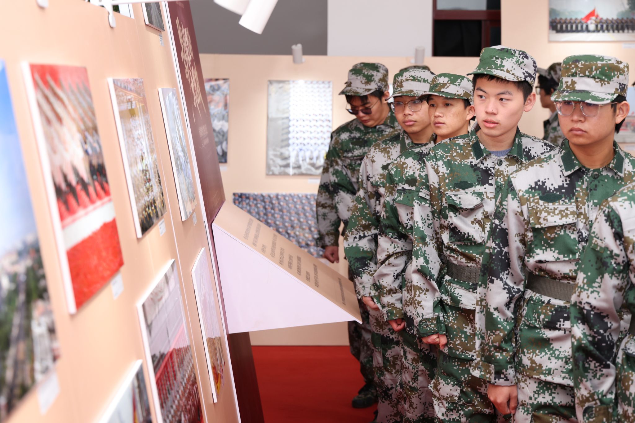 從開國大閱兵騾馬牽引野炮的艱苦初創到現今高超聲速導彈、無人機作戰群等新域新質作戰力量震撼登場的硬核彰顯,從抗戰老兵莊重敬禮的動容瞬間到青年官兵意氣風發的精神風貌,每一張照片都傳遞著強國強軍的堅定信念,讓師生直觀感受到國家從站起來、富起來到強起來的偉大飛躍。一張張精彩照片定格歷史瞬間,講述鏡頭背后的故事,師生們沉浸其中,感受閱兵現場精彩瞬間。