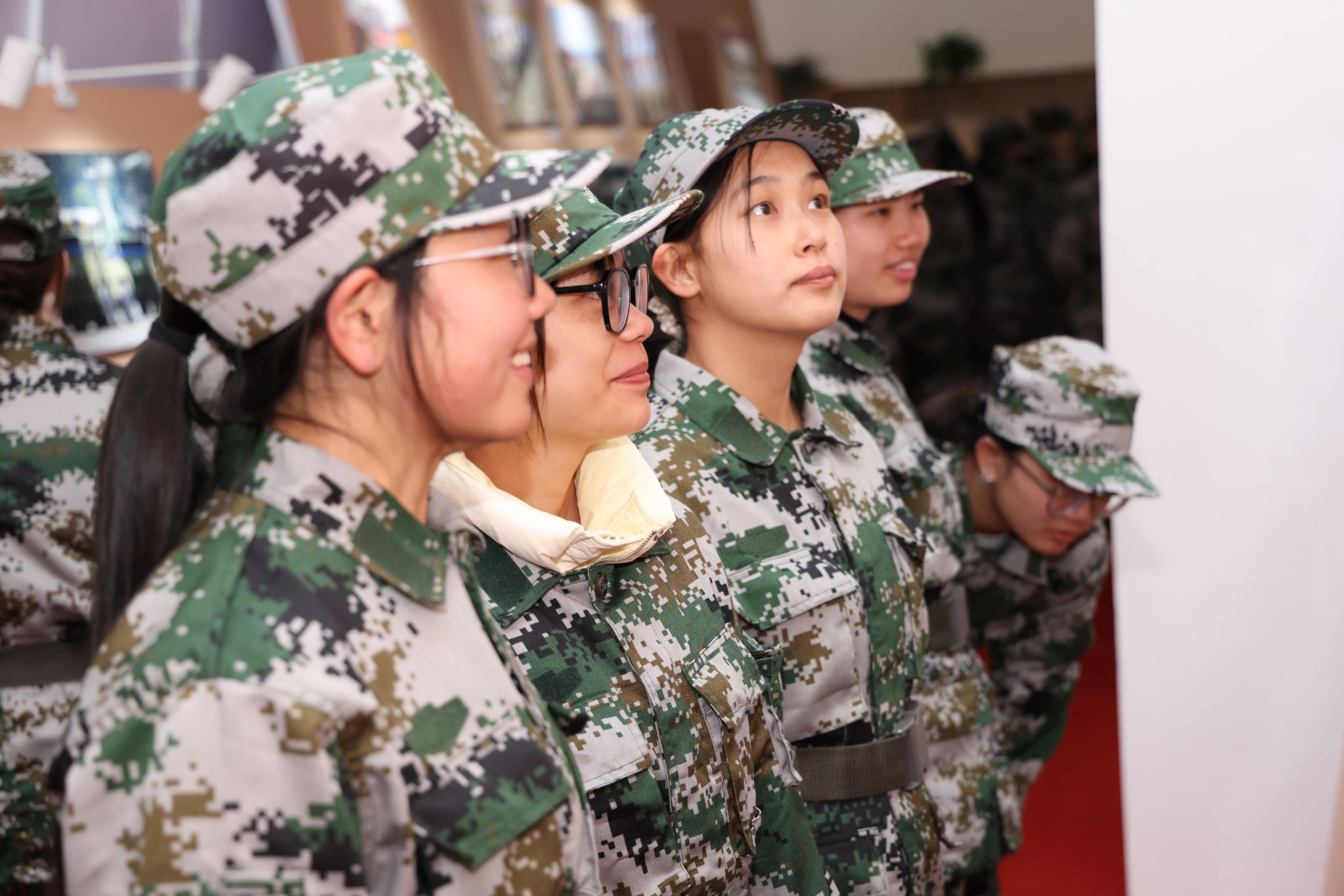 開展當天正值學校新生軍訓首日,軍訓新生在教官的帶領下有序觀展。學生們被照片中展現的家國情懷和民族氣魄深深感染。大家表示,此次展覽不僅是視覺的震撼,更是精神的洗禮,作為云農學子,要勇擔使命、砥礪前行,將愛國之情、強國之志與“把論文寫在祖國大地上”緊密結合,在鄉村振興、糧食安全等國家戰略需求領域勇毅前行。