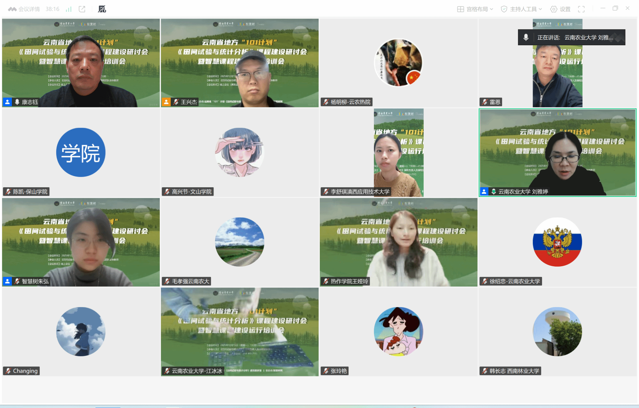 會議由《田間試驗與統計分析》課程負責人康志鈺教授主持,云南省13所高校承擔統計類課程的教師參加,并邀請云南省高校課程建設專家指導委員會副主任委員、地方“101計劃”植物生產類專業的負責人、學校煙草學院院長劉雅婷教授到會指導。本次培訓會立足地方“101計劃”建設要求,聚焦課程建設與智慧化運行,旨在交流經驗、開展培訓,以促進優質教學資源的有效應用與落地。
