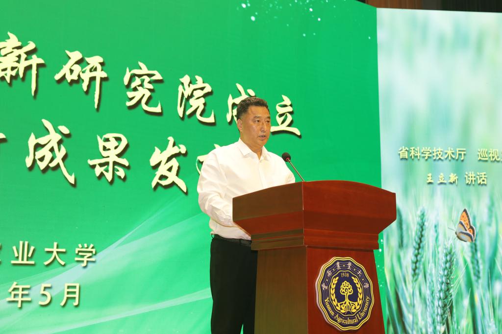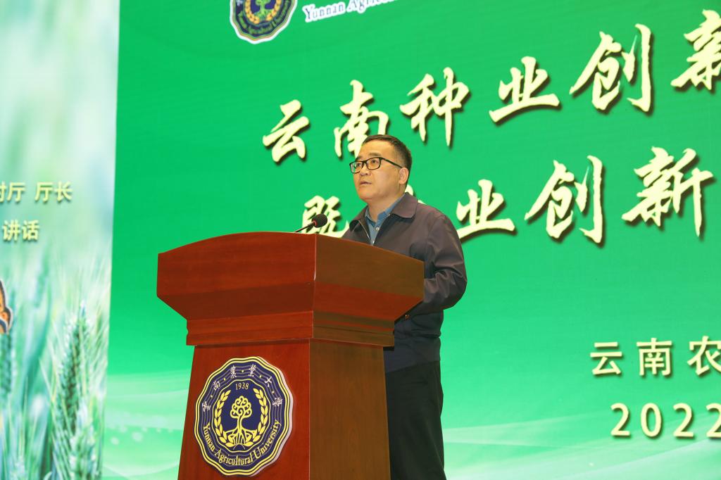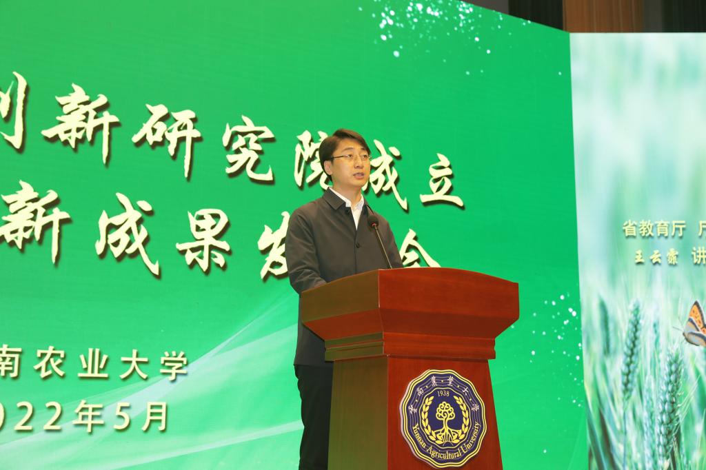 省教育廳廳長王云霏、省農業農村廳廳長謝暉、省科技廳巡視員王立新分別作了會議講話,表示將一如既往鼓勵支持云南農業大學,希望云南種業創新研究院能依托云南農業大學產、學、研聯動優勢,圍繞種子產業鏈關鍵核心技術,搭建公共平臺,匯集科研力量,張榜聯合攻關,激發創新活力,全面加強種業科技原始創新,在云南糧食安全和產業發展方面作出農業高等院校的貢獻,有力助推種業發展邁上新臺階。