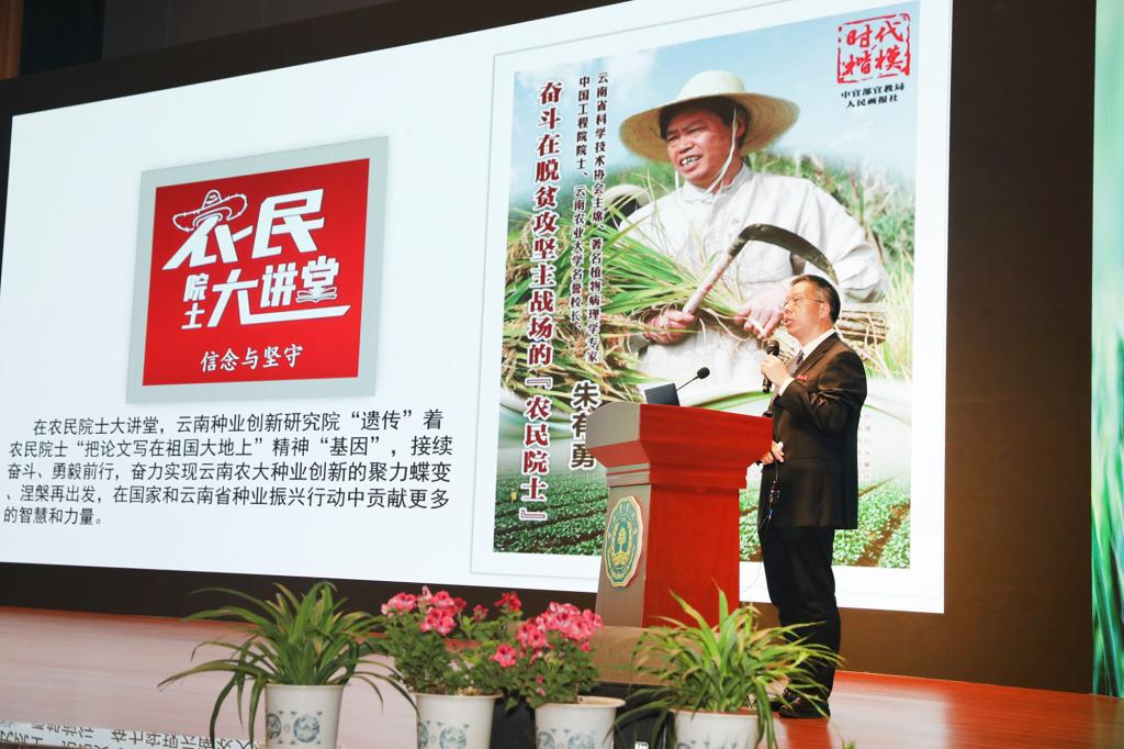 朱有勇介紹了幾十年來學校在種業創新研究上的艱辛探索和取得的輝煌成績,他表示,有了好的“種子”,更要在“耕種”上下功夫,要探索更加科學高效的種植方式,真正把論文寫在祖國大地上。