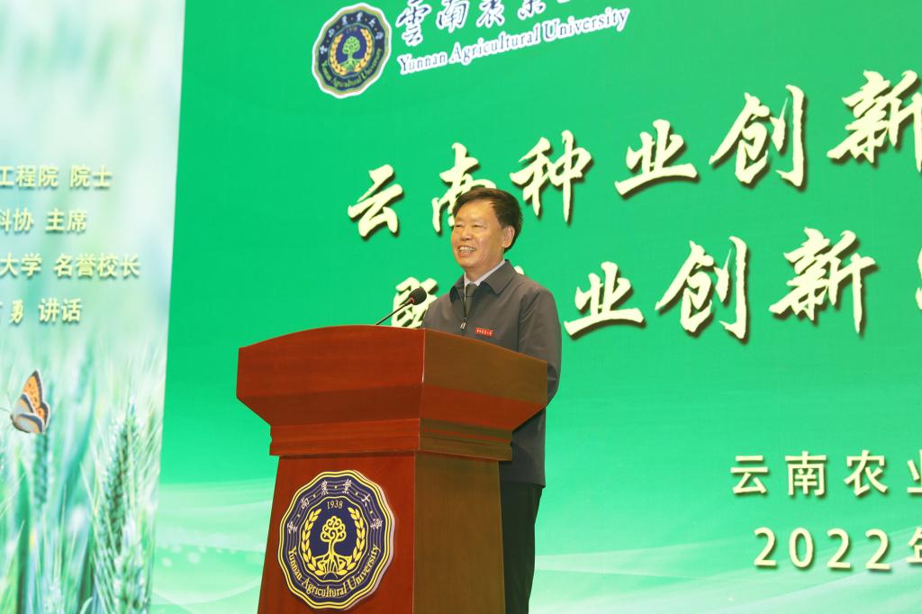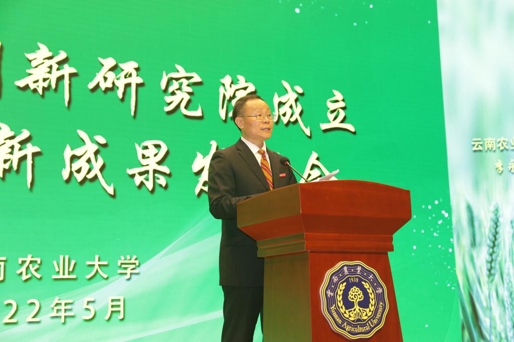 本站消息 2022年5月21日下午,云南種業創新研究院成立暨種業創新成果發布會在學校校友會堂舉行。“時代楷模”、中國工程院院士、學校名譽校長朱有勇院士,省教育廳、省科技廳、省農業農村廳、省鄉村振興局、省林草局、省農科院、省林科院、西南林業大學等有關單位領導,校黨委書記黎素梅、校長李永和以及相關企業負責人出席會議,學校其他校領導及部分師生代表參加會議。