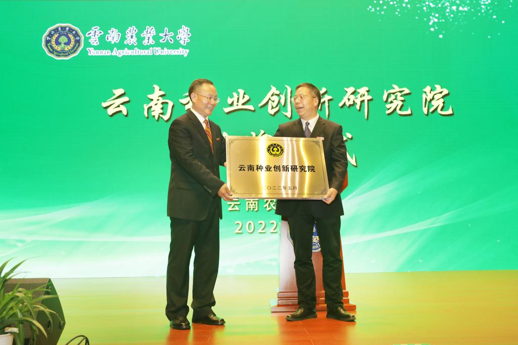 校黨委副書記雷建奕宣讀了云南種業創新研究院成立及任命文件。李永和向副校長、云南種業創新研究院院長楊生超進行了授牌。